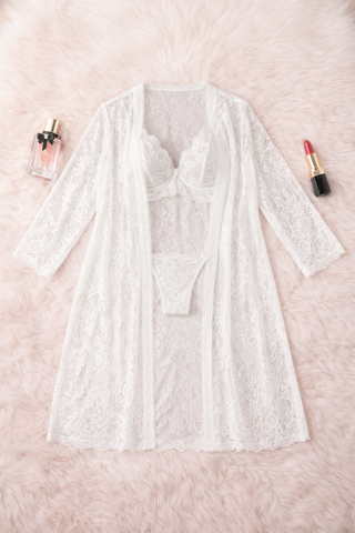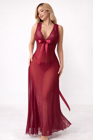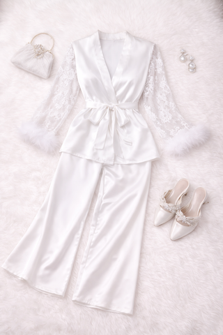 View allFemme 3079 Cotton Soft Long Pajama Set with lace trim