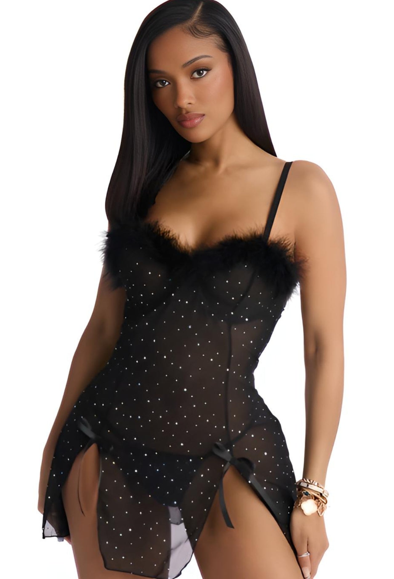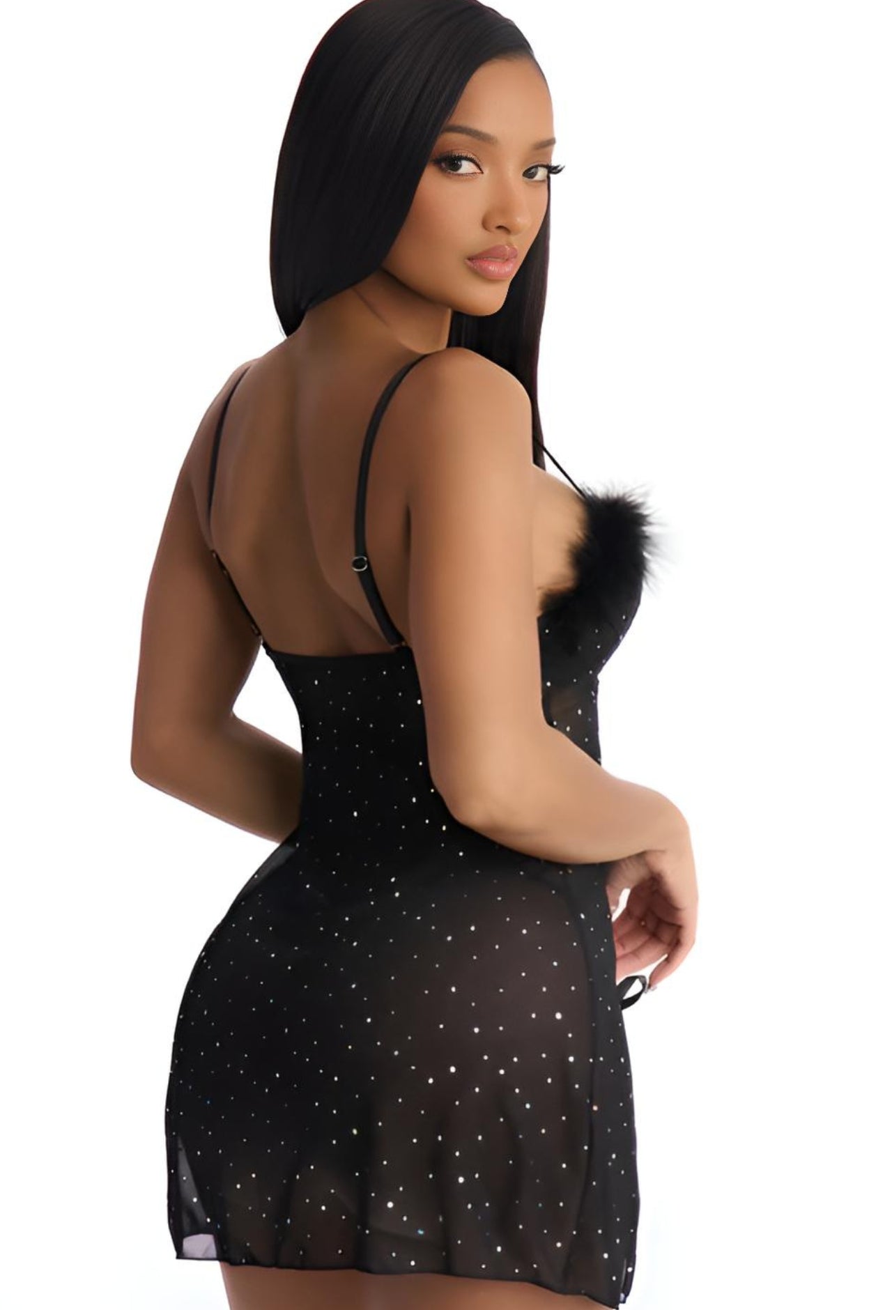 Elegant black nightgown made from soft tulle blended with premium lace for a feminine and flattering look. Designed with adjustable straps and a lightweight breathable fabric, this one-piece lingerie enhances your natural silhouette with comfort and confidence.