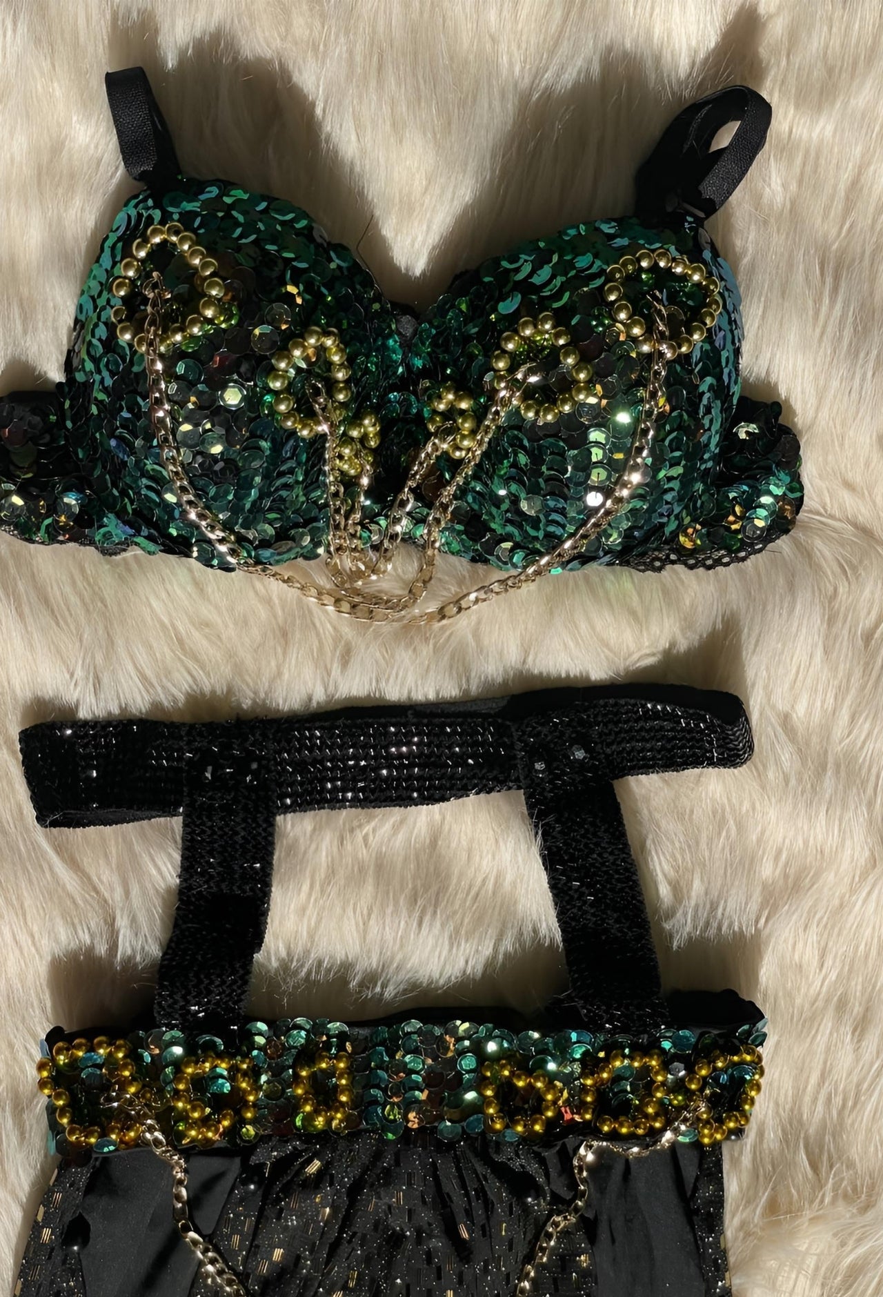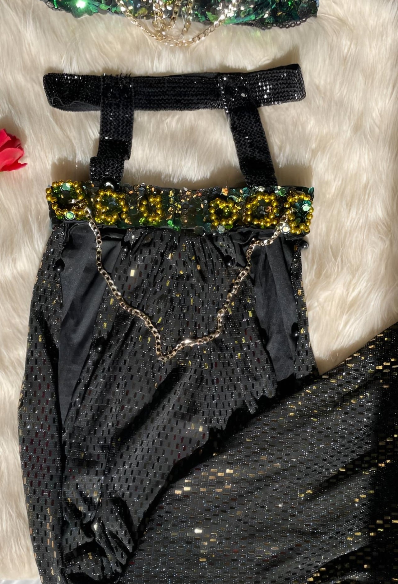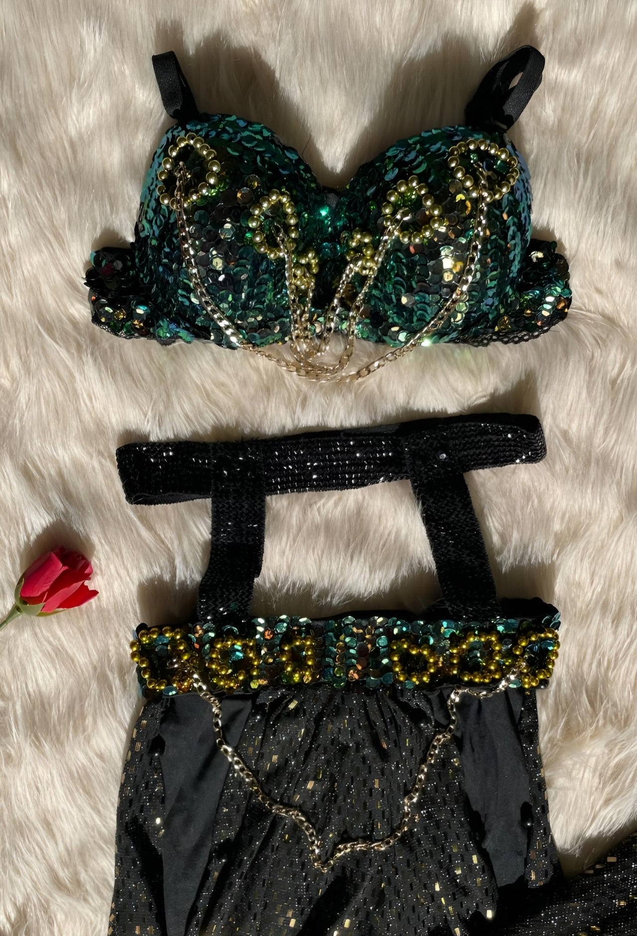 This belly dance outfit is perfect for any performance. this costume features high-quality material and two pieces, fitting people between 55kg and 70kg. Dance with confidence in this sexy and stylish costume.