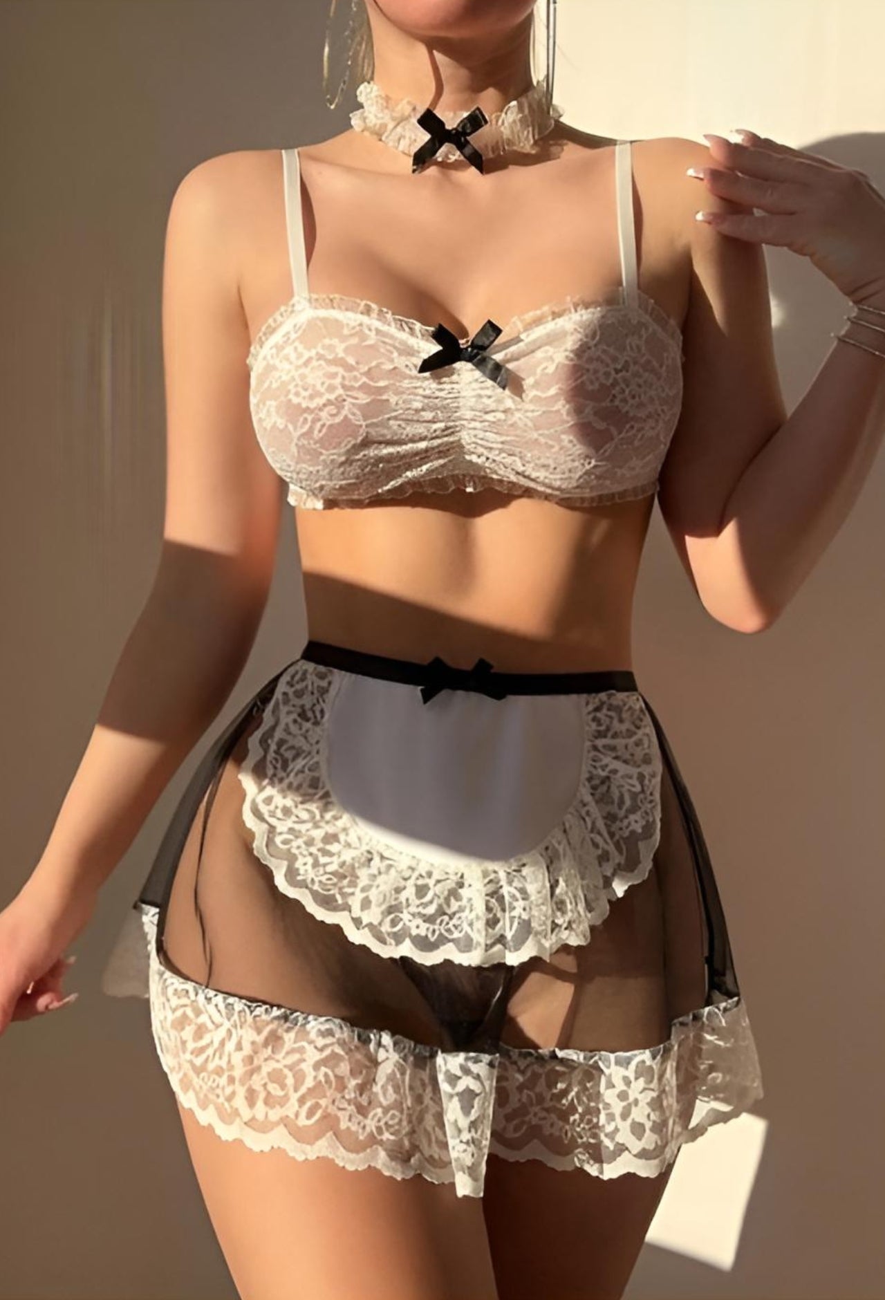 Women's fancy nightgown for a fun night out in a Maid Outfit Model, made of the finest lace with tulle.