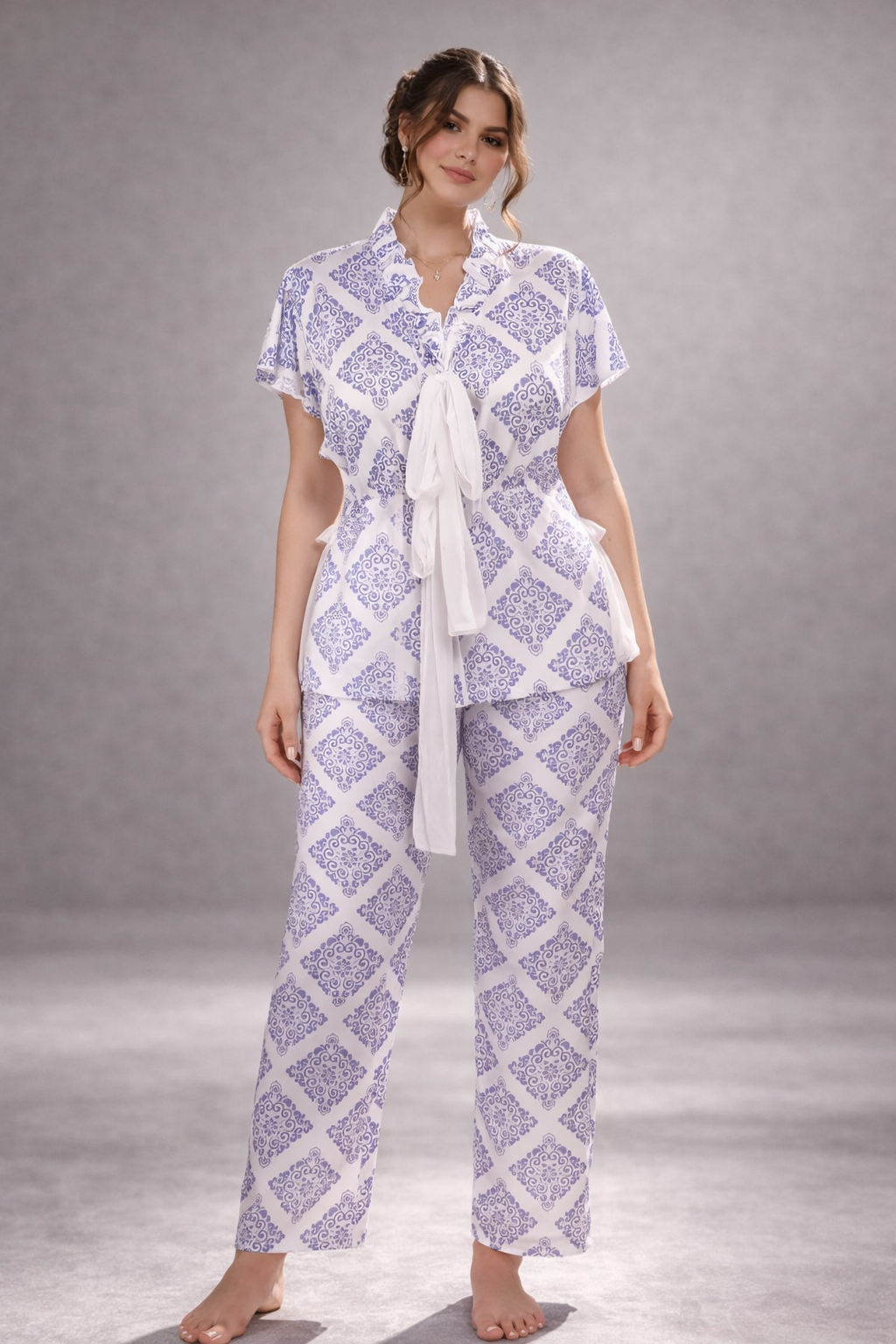 The elastic waistband on the pants stretches gently around your waist without feeling tight. This ensures freedom of movement and long-lasting comfort. Whether lounging at home or preparing for bed, these pants deliver the perfect balance between style and ease.