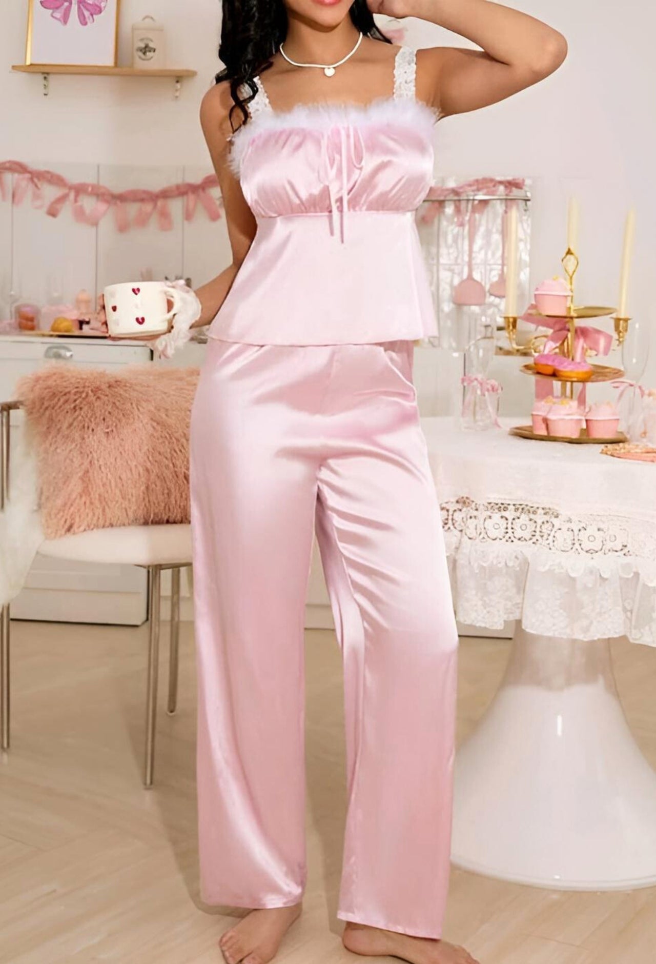 Sexy up the night in this two-piece women satin pajama. It's made of high-quality material.