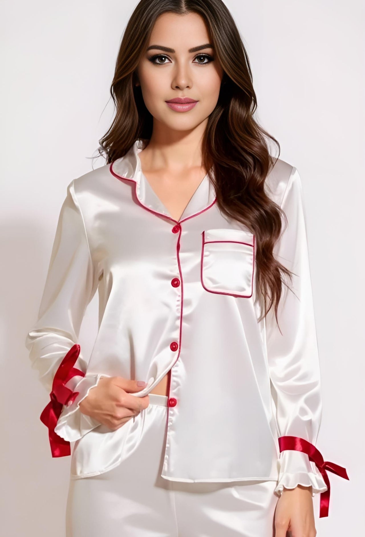 This high-quality 2-piece set of sexy pajamas, top and pants made of satin material.