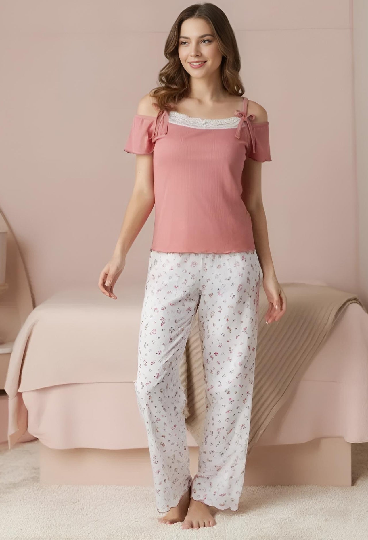 Summer pajama pants made of cotton and ribbed fabric with an attractive appearance.