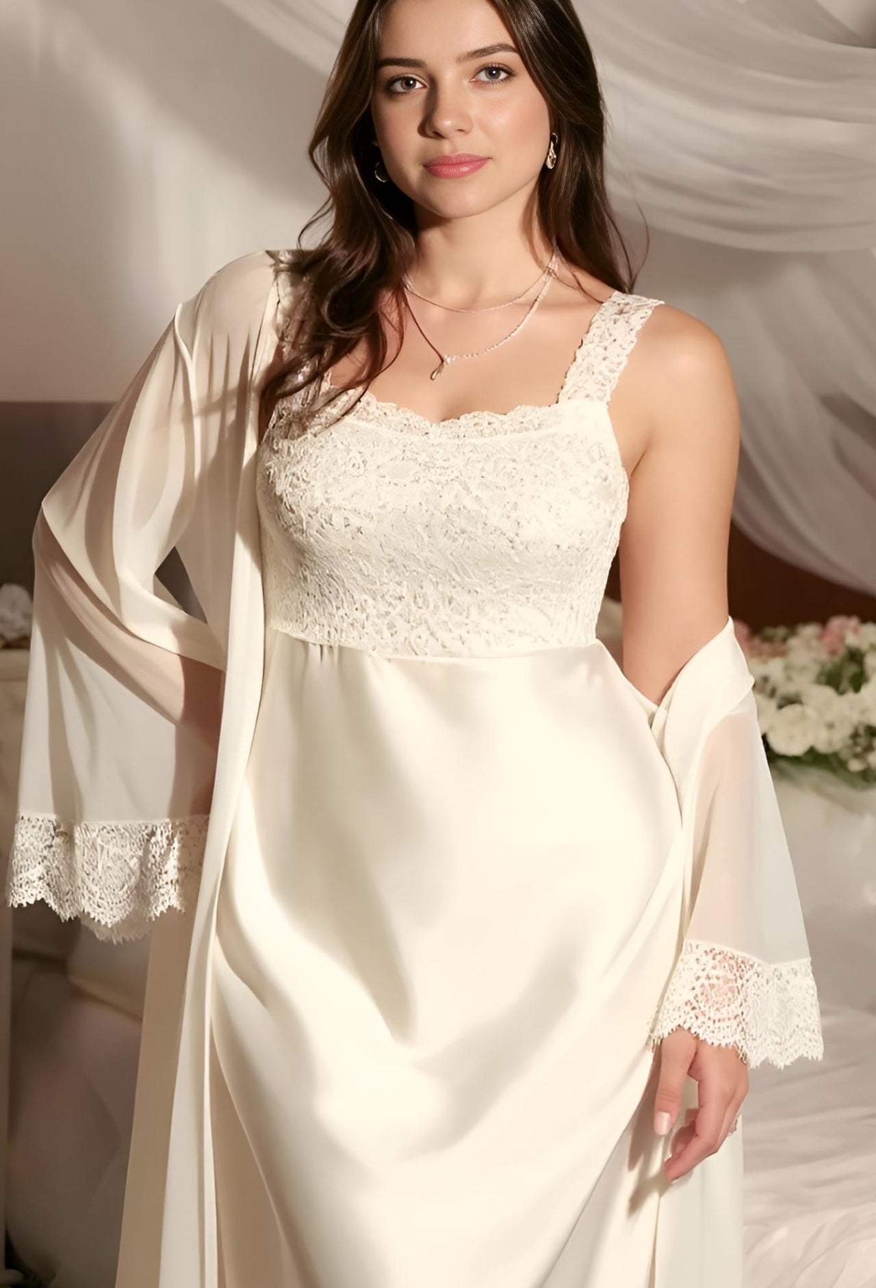 Sexy Lingerie Made of soft satin fabric with an elegant shine and a silky touch The robe is made of translucent light tulle, short in length and gives a touch of tenderness and softness, with wide sleeves that add fluidity and beauty to the design.
