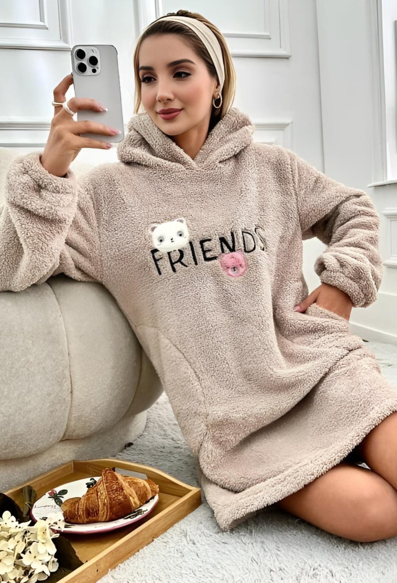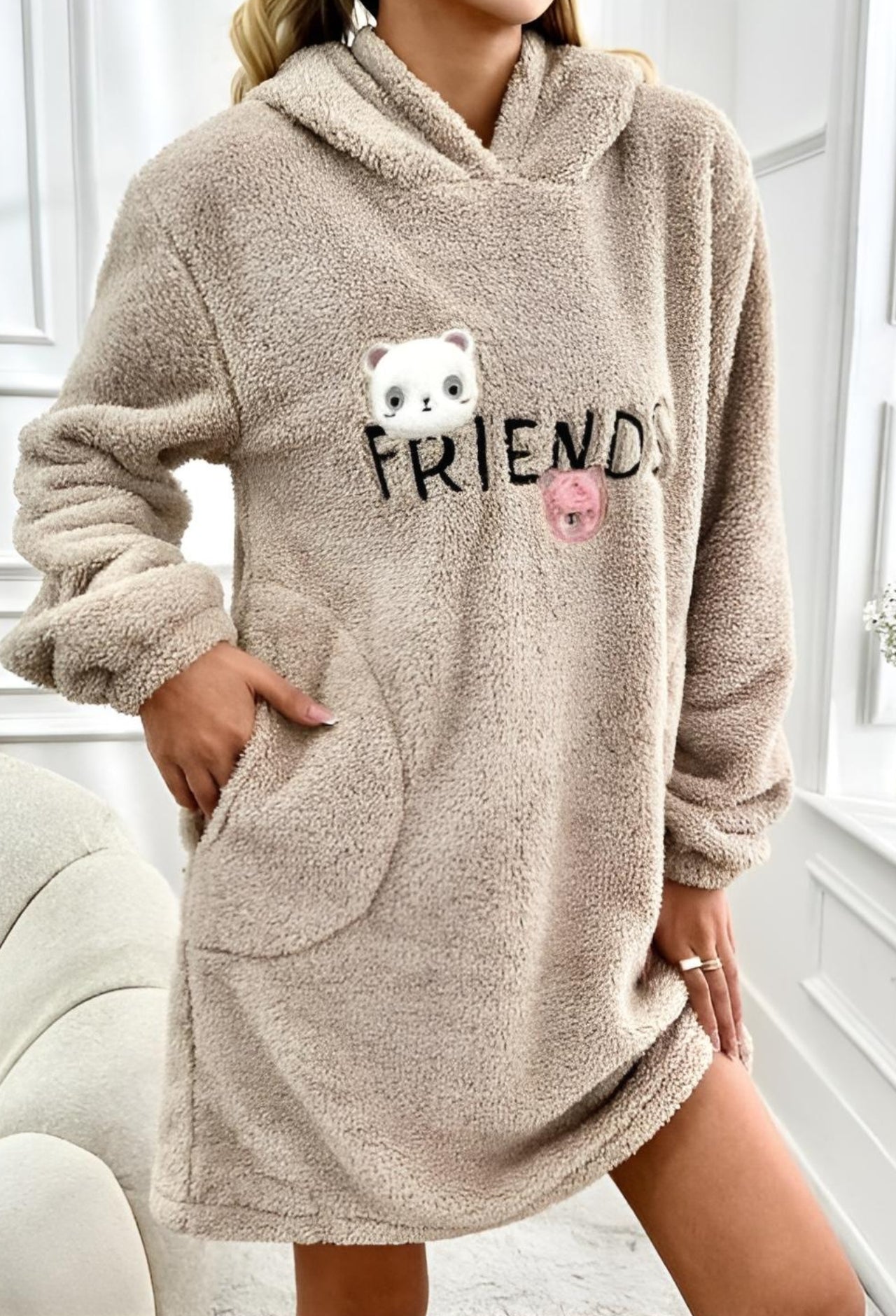 Women's polar Long Sleeve Nightgown, For Autumn-Winter, Fluffy, Cozy.