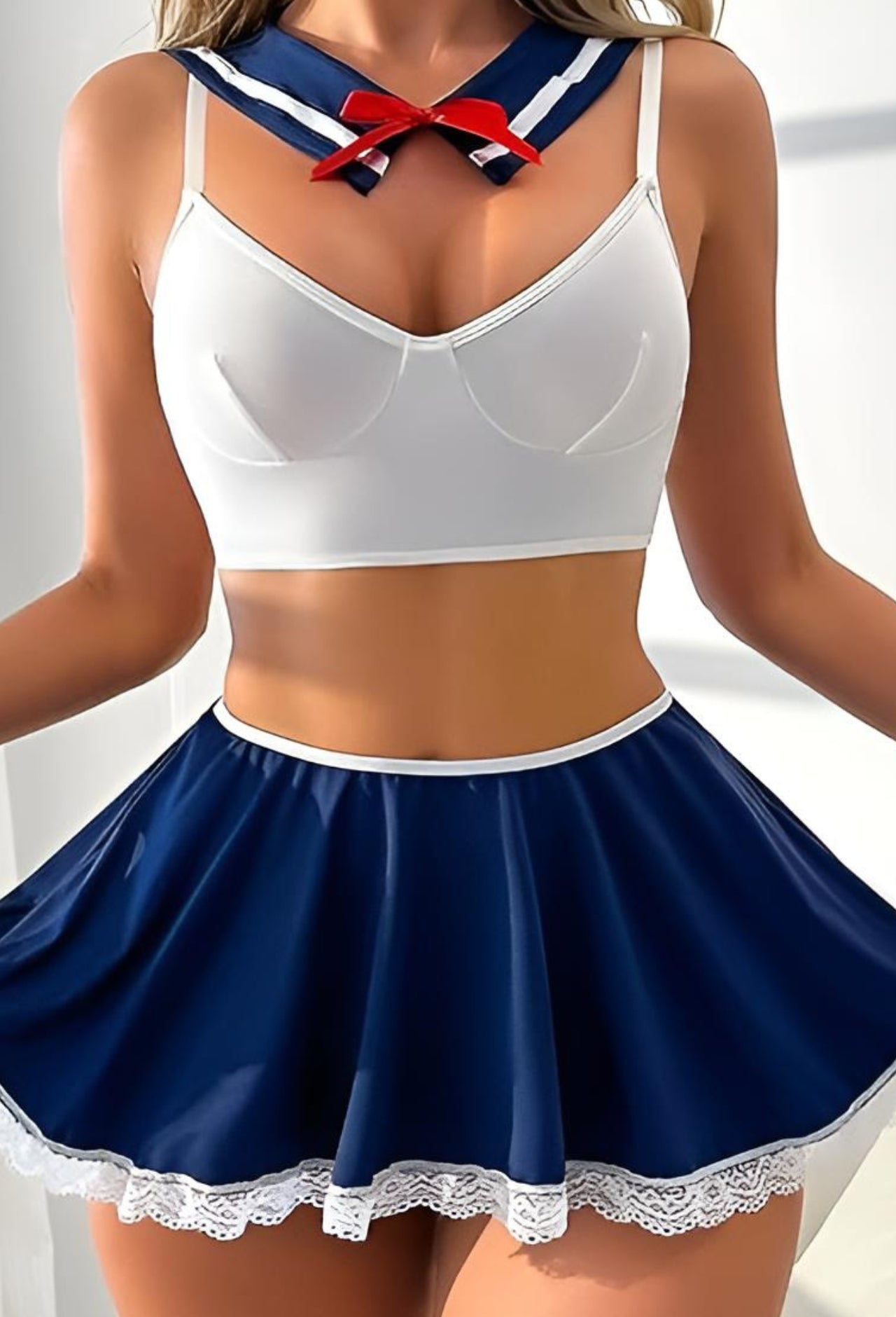 Women's Sexy Seaman Cosplay Costume with Lace Short Dress Uniform for Seductive Holiday Event Decoration.